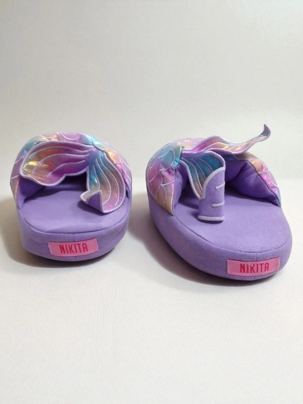 Pantuflas para adultos confeccionadas artesanalmente en jersey. Bordadas. Aplique de cola. Efecto tornasol. Suela antideslizante y textura fresca y suave. Industria nacional de alta calidad.