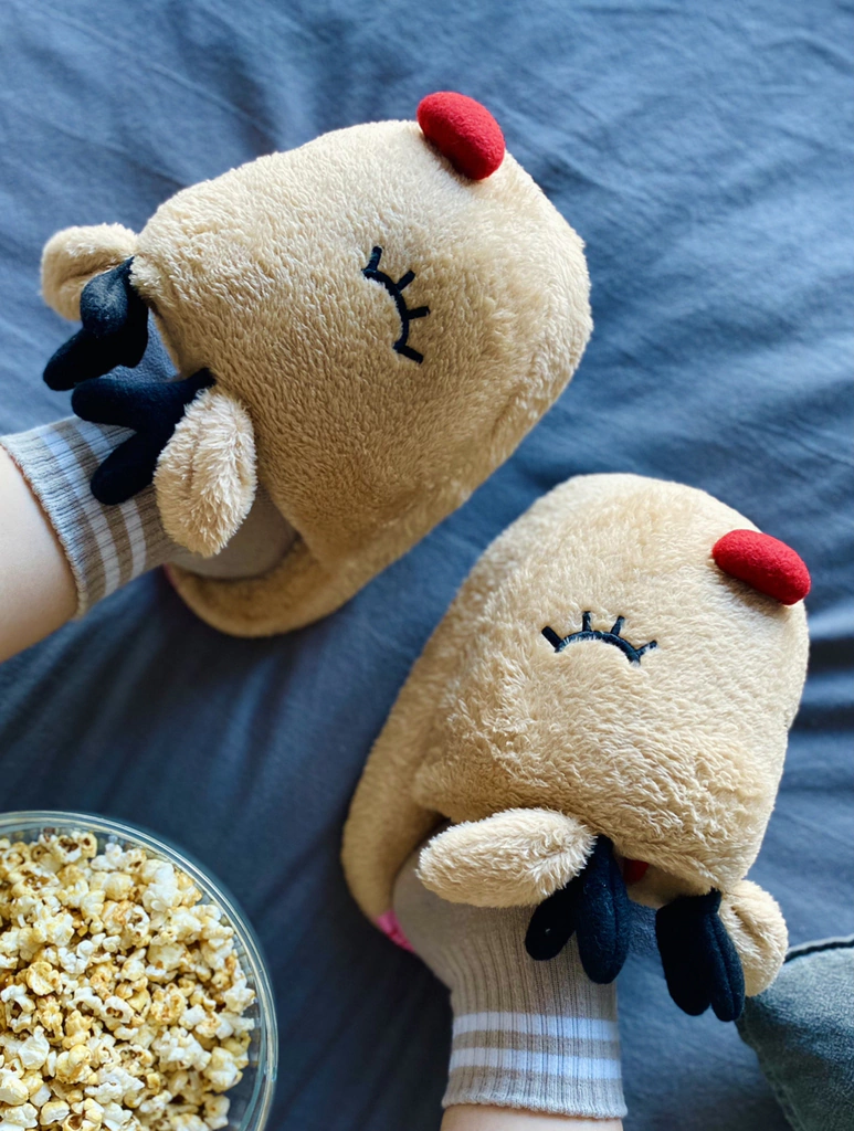 Pantuflas para adultos confeccionadas artesanalmente en polar soft. Bordadas. Aplique de orejas, cuernos y hocico. Suela antideslizante y textura calida y suave. Industria nacional de alta calidad.