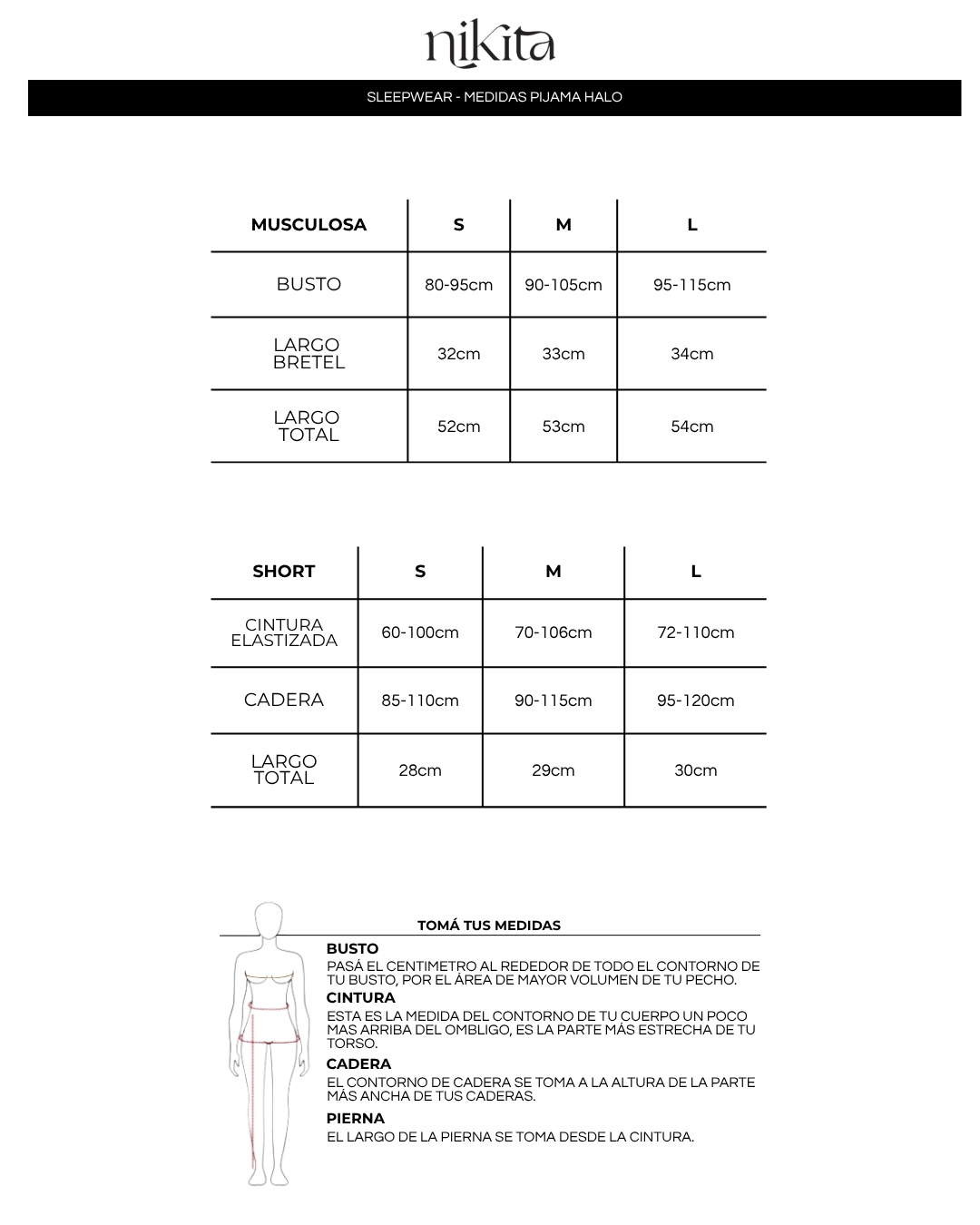 Sol luce un talle S. Sus medidas son: busto 95 / cintura 67 / cadera 83/ altura 1,60.